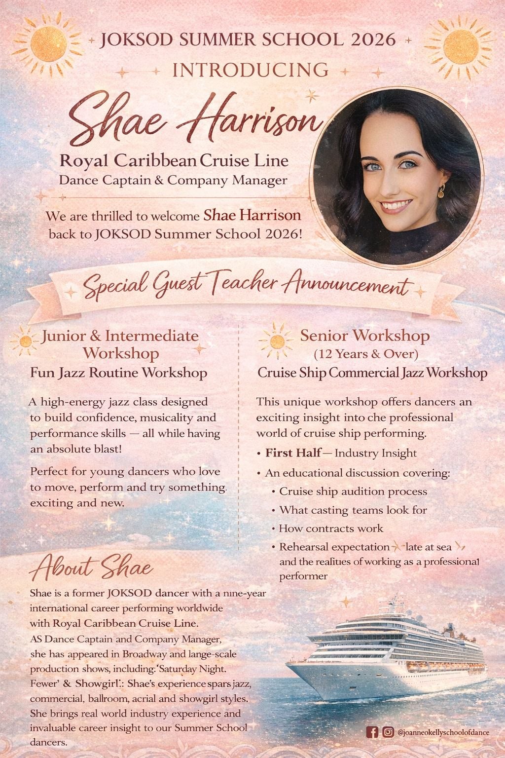 The Summer School is open to all dancers, whether you attend JOKSOD or not, and we will be catering from ages 5 years and up! So why not come along and give it a try, with the opportunity to be taught by some masters in the dance industry.